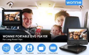 WONNIE 10.5 Inch Car DVD player for Kids, Headrest DVD Monitor with HDMI Input, Support 1080P MP4 Video, Region Free, AV In/Out, Mounting Brackets & Headphones Included