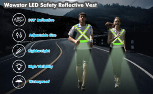 Wowstar LED Reflective Vest Running Gear, High Visibility LED Running Safety Vest With Functional Pocket Lightweight Men & Women's Sport Vest for Jogging Running Cycling Walking Motorcycle