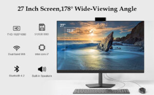 All in one PC Desktop Computer Gaming Desktop PC 27 inch FHD with Intel Core i7-3520M(Up to 3.60Ghz) Windows 10 Pro,8GB DDR3,512GB SSD,With Front Webcam,Support Dual Band Wi-Fi,Bluetooth 4.2,Black