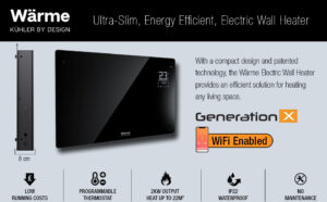 Wärme Designer WiFi Electric Wall Heater Panel Heater Radiator – Ultra Slim (8cm) – 2Kw – Programmable Digital Thermostat – Wall Mountable (Free Wall Bracket Included) – Maintenance Free