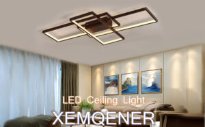 XEMQENER LED Dimmable Ceiling Lights with Remote, Chandelier Ceiling Light with 4 Squares, Flush Mount Ceiling Lamp for Living Room Kitchen Office Bedroom Dining Room(2800k-6000k, White, 6-15㎡) [Energy Class A+++]