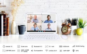 Tablet 10 Inch Android 10.0 YESTEL Phablet 4GB RAM,64GB ROM(Expand to 128G) Quad Core Processor Tablets | Dual SIM | 1280*800 HD IPS Display | 5.0+8.0 MP Camera | Cover Mouse & Keyboard, White silve