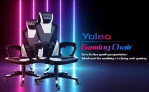 YOLEO Gaming Chair for Adult, Ergonomic Home Office Desk Chairs Lumbar Support High Back Swivel Racing Style Computer Games Chair Larger Armrest with Height Adjustable and Headrest-Black/White