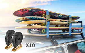 Youyijia 10 Pack Heavy Duty Ratchet Tie Down Straps, 6M x 25mm, 800KG Load Capacity, Adjustable Tensioning Belts for Motorcycles, Trailers, Cars, Cargo (Black)
