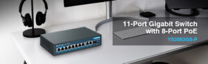 YuanLey 11 Port Gigabit PoE Switch, 8 PoE+ Port 1000Mbps, 2 Gigabit Uplink, 1 SFP Port, 120W 802.3af/at, Metal, Qos, Unmanaged Plug and Play AI Smart Detection Ethernet Switch