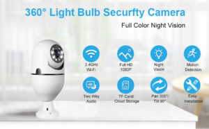 Yurayisen E27 Bulb Camera,1080P WiFi Home Bulb Camera,360°Rotate Auto Tracking Panoramic Camera With Two-Way Voice, Night Vision ,Human Motion Detection,Smart Tracking,Home Security Camera