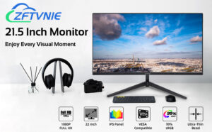 PC Monitor 21.5-Inch Full HD Monitor 1920 x 1080P IPS Computer Screen, Frameless, 75Hz, 5ms, VGA & HDMI Ports, Computer Monitor for Laptop/Xbox/PS3/PS4, ZFTVNIE