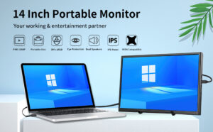 Portable Monitor, ZFTVNIE 14 Inch Small HDMI Monitor IPS Full HD 1920×1080 Mini LED Monitor for Computer PS4 Xbox Raspberry Pi, 60Hz, Wall Mountable, Built-in Speakers, Plug&Play