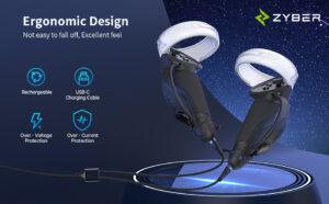 ZYBER Rechargeable Controller Grips Cover for Oculus Quest 2 Accessories, Silicone Cover with Rechargeable Batteries(1000mAh X2) and Charging Cable, Adjustable Knuckle Straps Halo Ring Cove